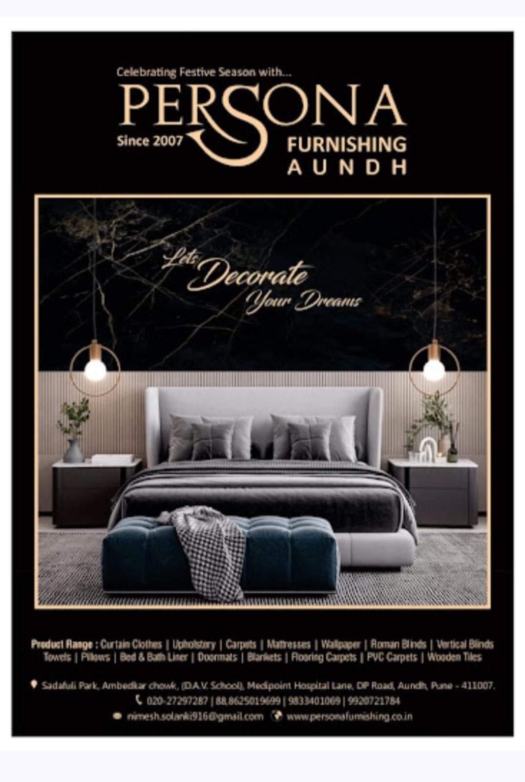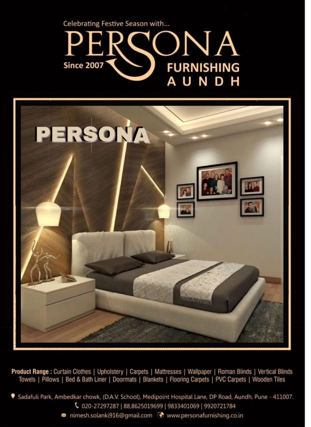 Profile-Persona Furnishing, Persona Furnishing is a leading the highest and biggest Furnishings STORE at Aundh, Pune which established in 2006. We have the widest range of fabrics Bed `n` Bath Linens, Curtain `n` Upholstery Fabrics, Bed Sheets, Curtains, Door Mat Mattress, Shower Curtain, Table Cover. Persona Furnishing realizes the ever changing needs of our valued customers with the goal of providing high-quality products, first rate service ... View More